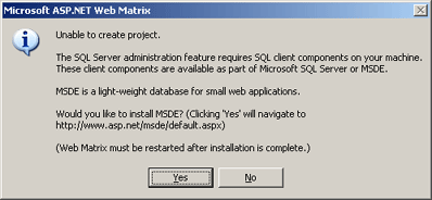 ASP.NET Web Matrix จะแสดงหน้าต่างแสดง รายละเอียด และถ้าคุณ คลิกปุ่ม OK